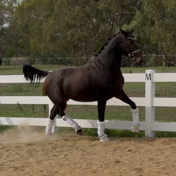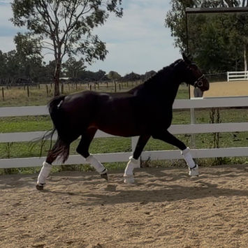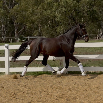 Hohenherz is a purebred Trakehner filly. She has a divine temperament, being very sweet and inquisitive. She is highly intelligent and has that spark and spunk about her which a top competition horse needs. Polly's conformation is very lovely and is a true example of a modern Trakehner. She is incredibly eye catching with lovely long, fine and straight legs, a strong set shoulder, a stunning face and she is beautifully proportioned. Polly's movement demonstrates three correct and very expressive paces. She has a massive trot stride with natural cadence which allows her to float around. Her hock action is extremely strong, allowing her to be balanced, naturally uphill allowing her canter to be bold and powerful. She has a lovely swinging walk with a big overtrack. All of her paces come natural to her which means she stays very relaxed, soft and supple through her body when moving around. Polly will be a top competition horse in any phase, but will excel further in either dressage or eventing.
